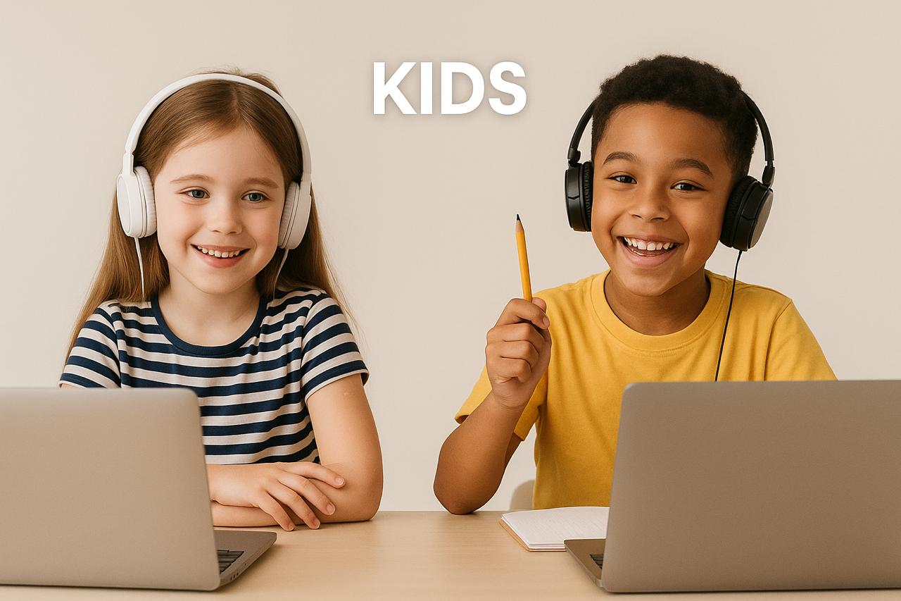 Los niños (Pre KIDS) aprenden con material visual y juegos interactivos.