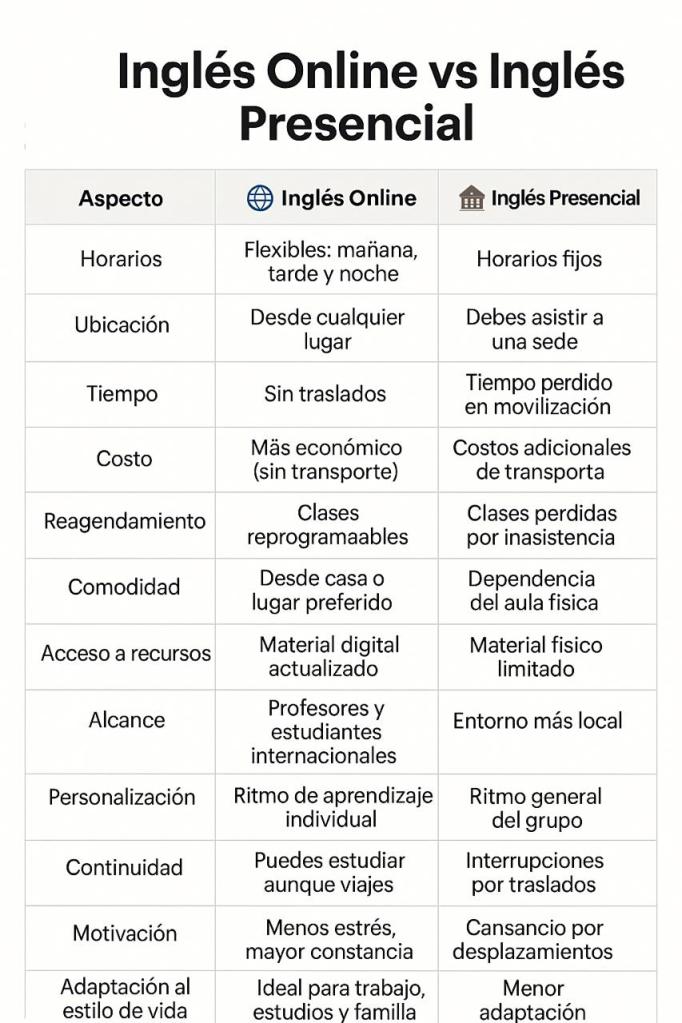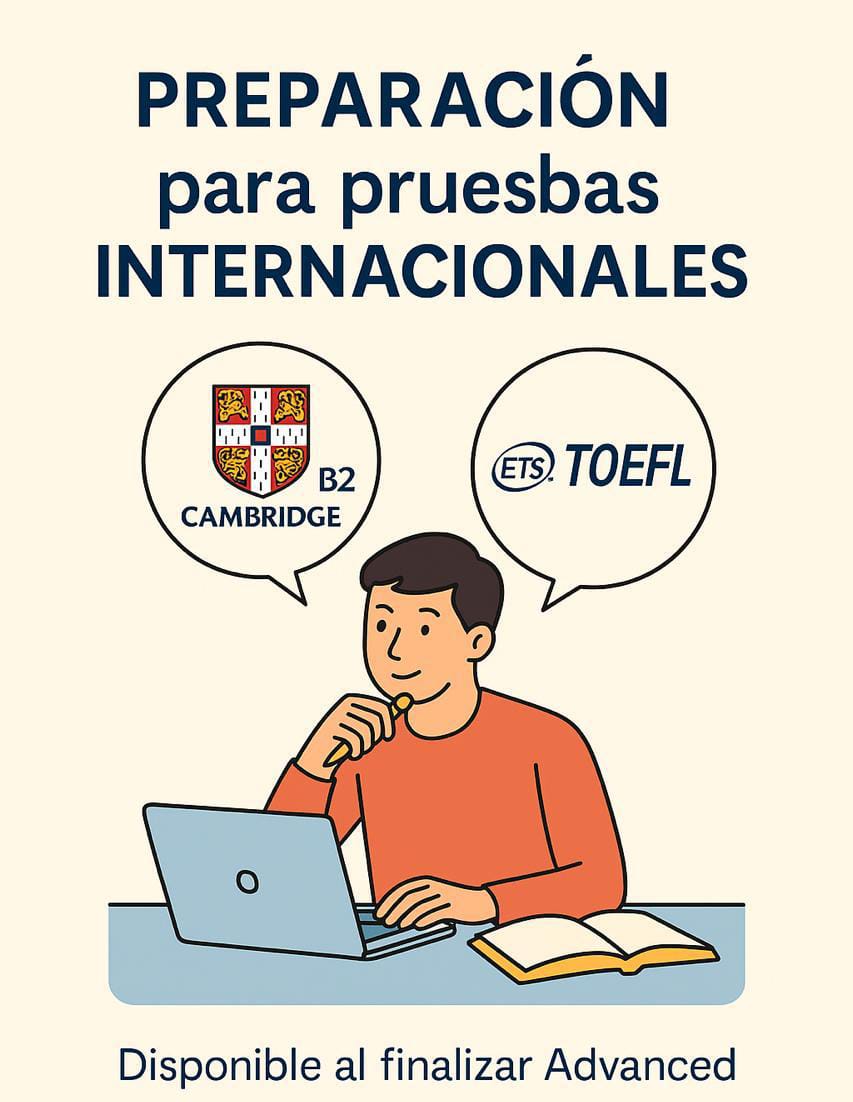 • 2 horas adicionales de talleres prácticos (Listening, Speaking, Vocabulario) para reforzar el aprendizaje.